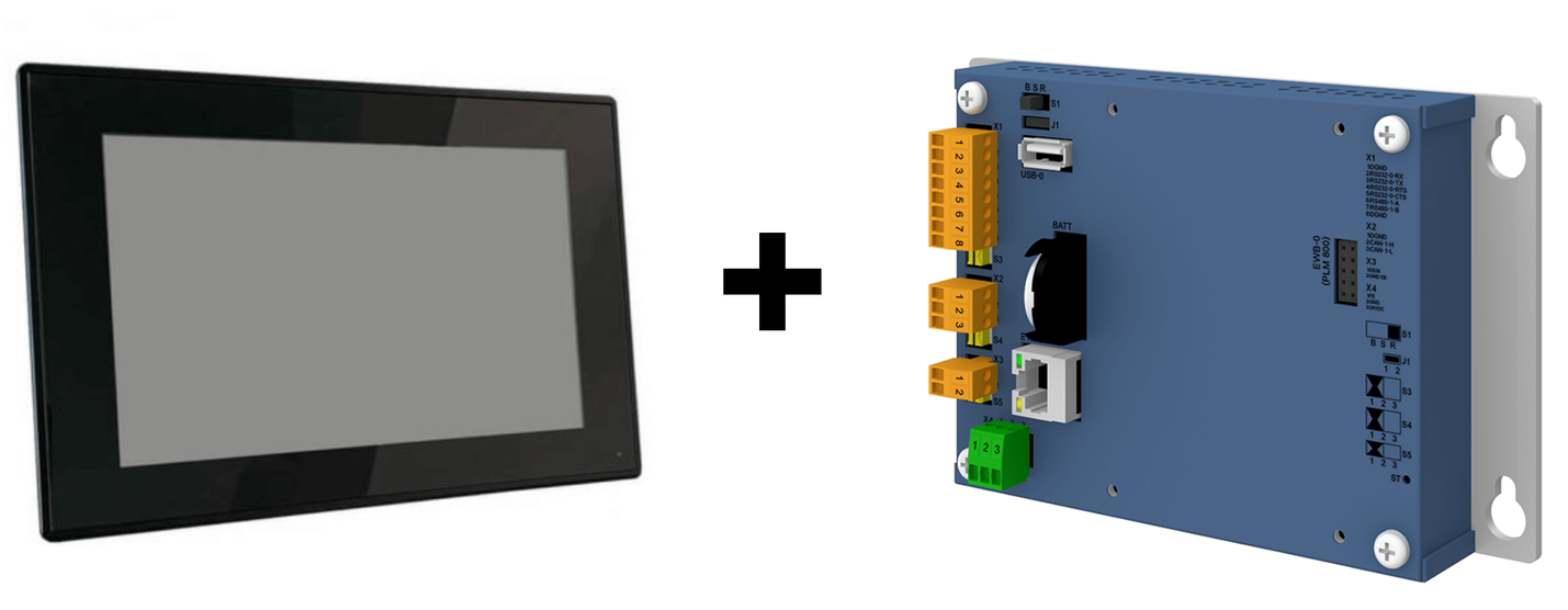 Master-Terminals mit SPS-Funktionalität vereinen ein HMI mit SPS in einem Gerät. Hierzu bieten sich Produkte aus der Systemfamilie PLM800 an, z.B. das MTB.807.20.